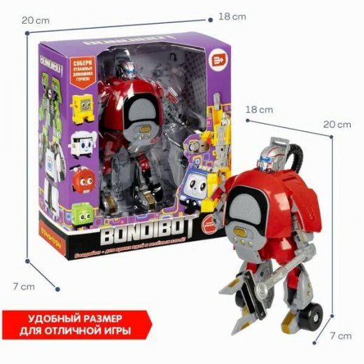 Извлеките фигурку робота из упаковки и, не прикладывая значительных усилий, сложите ее так, чтобы получился пылесос, а затем восстановите робота. Модель изготовлена из безопасного пластика, качество которого обеспечивает ее долговременное использование. В комплект входит фигура робота красного цвета в коробке. Источники питания для игры не требуются. Такой робот трансформер подойдет и мальчикам, и девочкам, ведь конструкция игрушки позволяет использовать ее в самых разнообразных сюжетно-ролевых играх.