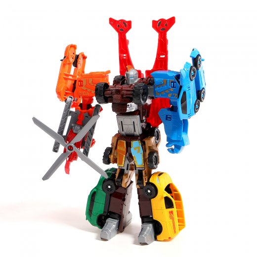 - 7 в 1: 7 роботов-машинок собираются в одного большого робота.