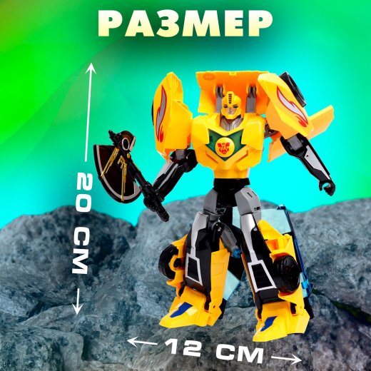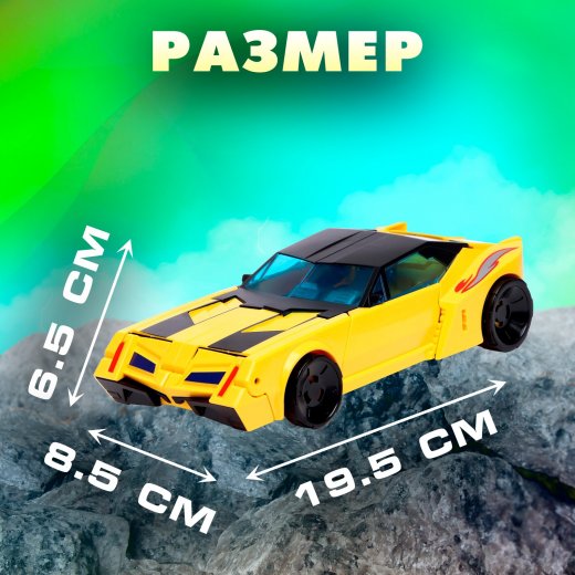 - Размер в виде робота: 12 × 6,5 × 20 см. В виде машинки: 19,5 × 8,5 × 6,5 см.
