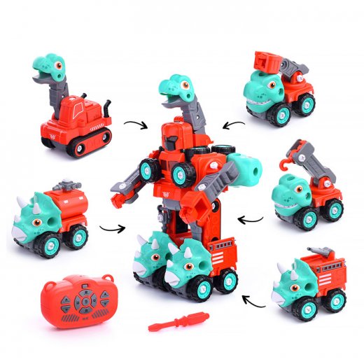 DIY-набор из пяти машинок, которые можно объединить в одного робота.