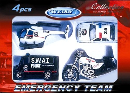 Игровой набор Служба спасения - полиция – это замечательный подарок для юного любителя техники и машин. Набор машинок «Полиция» состоит из качественных масштабных моделей с металлическим корпусом. Все входящие в набор модели имеют подробную детализацию, оснащены двигающимися частями. В набор вошли не только полицейские машины, но и вертолет и мотоцикл. Такая команда точно защитит любой город от злоумышленников и преступников!