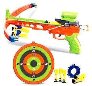 Состав набора: арбалет, 6 снарядов, держатель, мишень.