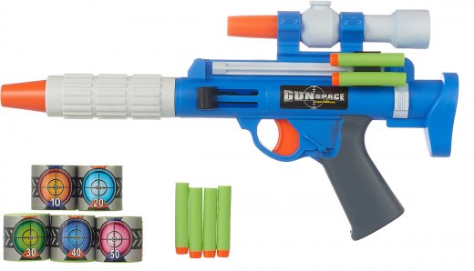 Игрушка "Бластер механический" выглядит как настоящий космический бластер. Оригинальный пистолет может стрелять мягкими снарядами, которые входят в комплект. Более того, дети смогут упражняться в меткости, стреляя по мишеням, которые также имеются в наборе. При выстреле издается реалистичный звук настоящего космического орудия.