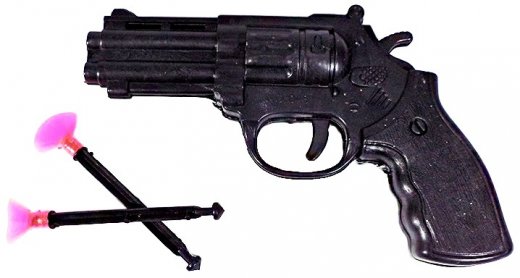 Пистолет с присосками - послужит великолепным подарком для юного поклонника оружия и просто любителя игр со стрельбой. С этим игрушечным пистолетом ваши дети смогут играть в военных, полицейских, ковбоев и героев боевиков. В набор входят 3 мягкие присоски. В отличие от пневматических моделей, этот пистолетик безопасен даже для маленьких деток. Корпус изделия имеет небольшие потертости, что создает эффект состарившегося оружия. По своему внешнему виду игрушка напоминает настоящий револьвер.