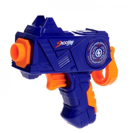 Игрушечный пистолет удобного компактного размера, обладает хорошей мощной дальностью выстрела.