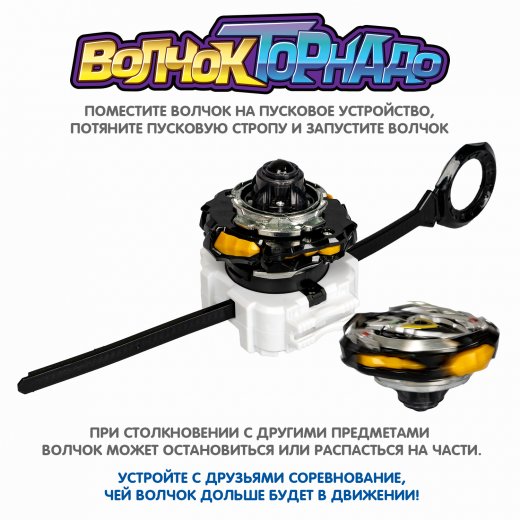 Собери всю серию Волчок Торнадо! В коллекции представлены красочные волчки разных видов с взаимозаменяемыми деталями, их продуманная комбинация дает дополнительный шанс на победу. Выбери, что важнее для тебя – баланс или оборона.