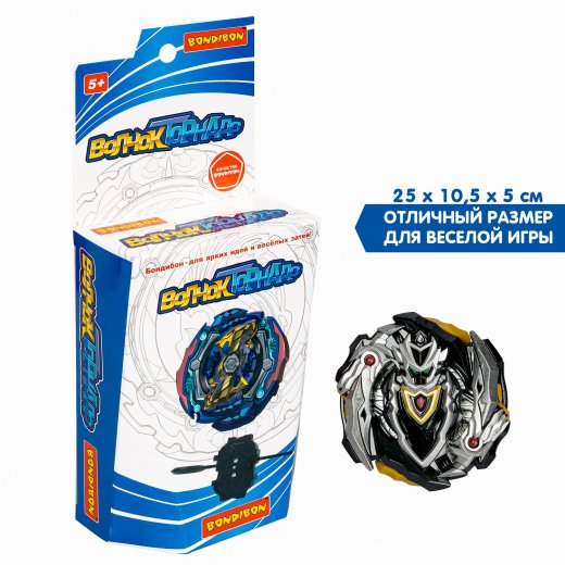 Игрушка запускается с помощью пускового устройства и крутится длительное время. При столкновении с другими предметами волчок может остановиться или распасться на части.