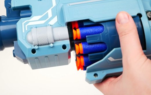 - 10-зарядный барабан (после каждого выстрела прокручивается на следующий патрон).