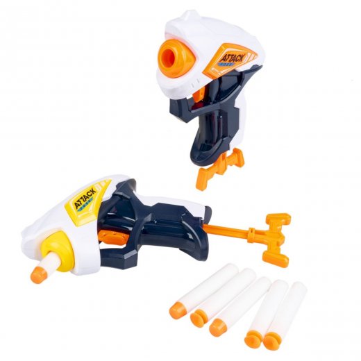 В набор входят: мишень, 2 пистолета, 20 мягких пуль.
