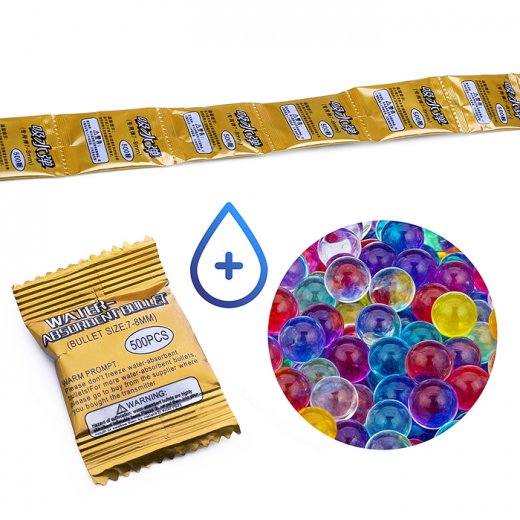 Гидрогелиевые пули для игрушечного оружия. Перед использованием нужно выбрать желаемое количество снарядов и поместить их в холодную воду на 3-4 часа, после воду слить. Чтобы вода не выветривалась, пули необходимо хранить в закрытой банке или вакуумном пакете.