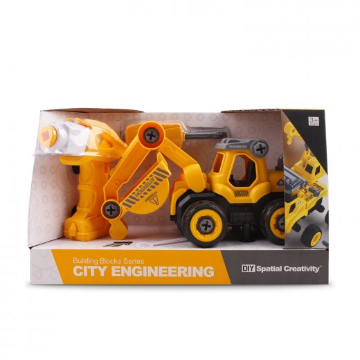Главное преимущество игрового набора Lei Meng "Экскаватор" - это функциональный электромеханический шуруповёрт! Автомобиль легко собирается и разбирается с помощью сменных насадок, которые входят в комплект. Работа шуроповёрта сопровождается характерным звуком, напоминающим звук работы настоящего инструмента. Кроме того, если вставить модуль шуруповёрта в собранный автомобиль, то он поедет.