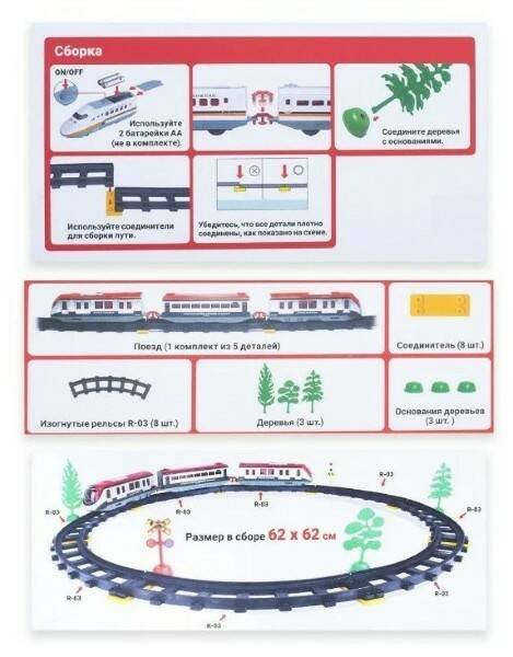 • Размеры железной дороги: 62 х 62 см.