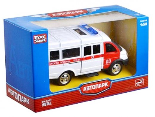 Развивающая игрушка автопарк скорая – это замечательный подарок для юного автолюбителя. Машина Скорой Помощи - один из самых нужных автомобилей в городе. Данная модель - абсолютно точная копия микроавтобуса Газ-3221, окрашенная в характерный белый цвет, с красными полосами и цифрами 03 на капоте. Открывающиеся передние двери и инерционный механизм движения придадут динамичность игровому процессу. Прочный металлический корпус окрашен стойкой нетоксичной краской, что делает игрушку безопасной для ребенка.