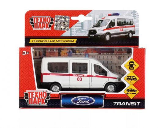 Металлическая модель «Ford Transit. Скорая помощь» ТМ «Технопарк» - прекрасный подарок для ребёнка:- открываются передние и боковые двери- инерционный механизм (поставьте машинку на ровную поверхность, потяните за корпус назад, отпустите и она начнёт быстро двигаться вперёд).Металлическая модель, выполненная с учётом всех особенностей прототипа, обязательно понравится вашему ребёнку. Благодаря открывающимся дверям, которые делают машинку максимально похожей на настоящую, всегда можно заглянуть к ней внутрь, чтобы убедиться - каждая деталь отлично проработана. Реалистичный дизайн данной модели позволит с головой погрузиться в игру, придумывая новые интересные сюжеты. Кроме того, эта игрушка познакомит малыша с видами спецтранспорта.