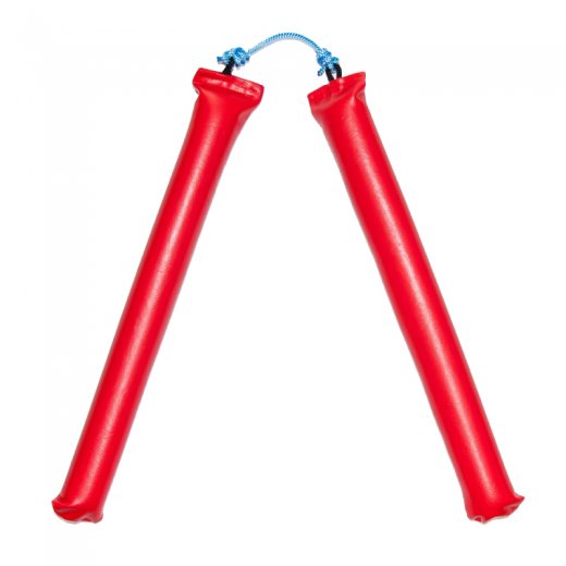 Нунчаки выглядят как две палки (длина каждой части 30 см), соединённые между собой плетёной веревкой, концы которой закреплены на верхней части каждой боевой секции. Длину верёвки можно регулировать. Оружие безопасно, за счёт мягких элементов дети не нанесут травмы ни себе, ни окружающим. В таком варианте ими можно пользоваться дома и на улице, их можно смело вращать, проделывая разные упражнения, предусмотренные для этого спортивного снаряда.