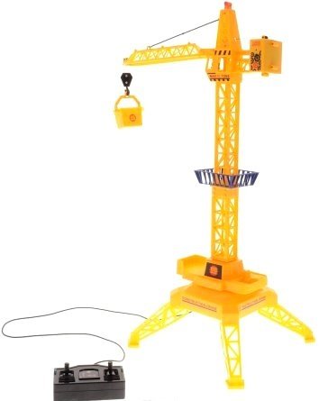 Игрушка может поворачивать башню на 360°, поднимать и опускать груз. Движения крана и лебедки управляются с помощью проводного пульта. Работа игрушки сопровождается световыми эффектами. В комплекте с краном также идет контейнер, который можно подвесить к крюку стрелы. Малыш проведет с этой игрушкой много увлекательных часов, воспроизводя свою стройку. Ваш ребенок будет в восторге от такого подарка!