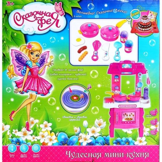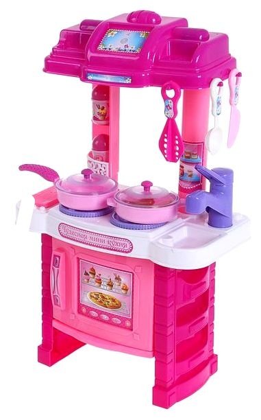 Кухня хозяюшка-1 – это весьма интересный и занимательный подарок для ребенка. Начать эксперименты с приготовлением пищи можно уже в самом раннем возрасте — пусть первым шагом станет набор «Кухня хозяюшка-1». Маленькие дети, как губки впитывают всё, что видят вокруг себя. Они внимательно смотрят, как мама готовит на кухне еду и накрывает на стол. Маленькие хозяйки всегда готовы помочь своей маме, поэтому будут в восторге от яркой и функциональной кухни. В каждый набор входят аксессуары, такие, как ложки, чашки, ножи (изготовлены из безопасного пластика), что придает игре реалистичность. Кухня имеет звуковые и световые эффекты.