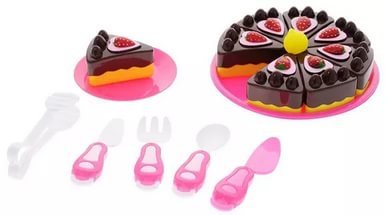 Этот набор позволит будущей хозяйке проявить все свое гостеприимство и сервировать стол реалистичной копией тортика, который уже порезан на кусочки и их достаточно взять щипцами, чтобы перенести на тарелочку. Такой увлекательный сюжет игры позволит малышкам в полной мере проявить свою фантазию, а также усвоить некоторые правила этикета. Посуда и торт изготовлены из пластика, поэтому, если девочка уронит чашку или что-то другое, то она не разобьется и ребенок не поранится.