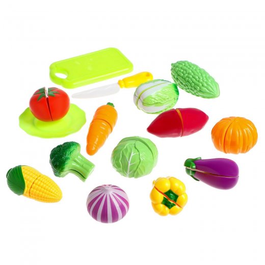 Набор продуктов – это весьма интересное и увлекательное занятие для юных любителей кулинарии. Игрушечный набор овощей выполнен очень реалистично, ярко и красочно, поэтому с легкостью привлечет внимание ребенка и займет его игрой надолго и с восторгом. Набор включает игрушечные продукты, а также доску для нарезки и ножик. Все предметы изготовлены из высококачественного и абсолютно безопасного пластика. Для имитации нарезки каждый продукт состоит из двух частей на липучках. С помощью пластикового ножа их можно разделять, импровизируя нарезку. С этим набором ваш юный повар будет часами занят игрой и сможет вкусно накормить всех своих кукол, домашних питомцев и т.д.