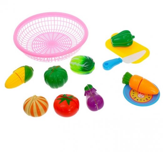 Набор продуктов – это весьма интересное и увлекательное занятие для юных любителей кулинарии. Игрушечный набор овощей выполнен очень реалистично, ярко и красочно, поэтому с легкостью привлечет внимание ребенка и займет его игрой надолго и с восторгом. Все предметы изготовлены из высококачественного и абсолютно безопасного пластика. Для имитации нарезки каждый продукт состоит из двух частей на липучках. С помощью пластикового ножа их можно разделять, импровизируя нарезку. С этим набором ваш юный повар будет часами занят игрой и сможет вкусно накормить всех своих кукол, домашних питомцев и т.д.