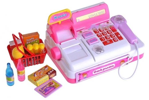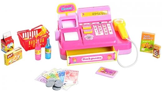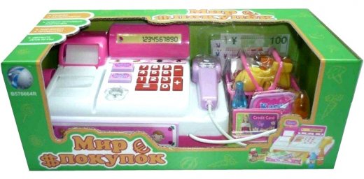 Игровой набор позволит ребенку почувствовать себя настоящим кассиром. От ребенка требуются внимательность и бдительность, ведь он будет иметь дело с деньгами, хоть и ненастоящими. Кассовый аппарат очень реалистичен, ведь он имеет циферблат для счета, выдвижной отсек для денег, а также сканер для считки кода с товара.