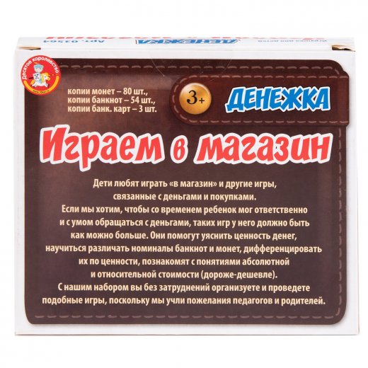 Купить игру "Играем в магазин. Денежка" в Новосибирске Вы можете в магазине развивающих и настольных игр "Игры Почемучек".