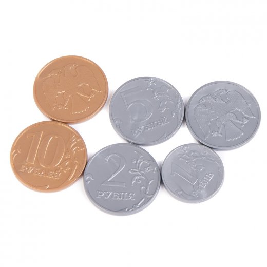 Разделите все деньги на две части таким образом, чтобы большая часть осталась у ребёнка. Товары (в комплект не входят) разложите на столе. В данной игре ребёнок выполняет функцию продавца: покупайте у него товары, давая суммы, превышающие стоимость по ценнику, чтобы ребёнок выдавал вам сдачу.