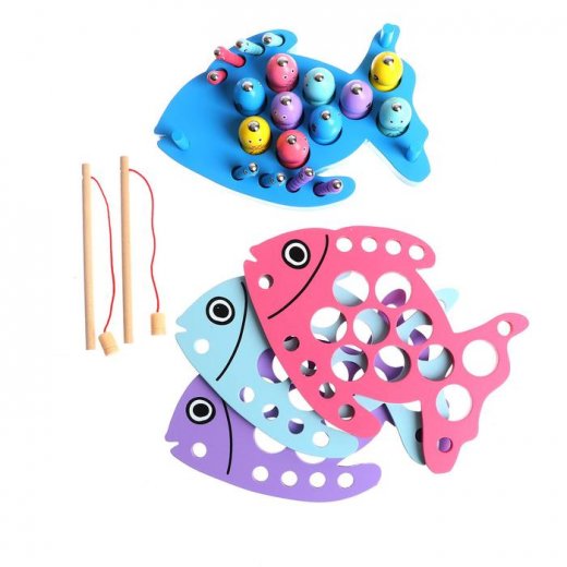В набор входит: 10 магнитных рыбок, 2 удочки, 8 магнитных червячков.
