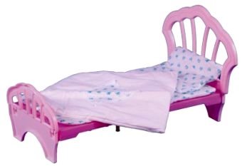 Изящная кроватка подойдет для куколок размером около 45 см. На нее можно положить матрас, подушку и постелить белье, чтобы куколке было уютно и комфортно. Продается кроватка в разобранном виде, но собирается она очень легко и даже увлекательно, словно конструктор для детей. Выполнена кроватка из высококачественного пластика, поэтому прослужит вам максимально долго. Красивые стильные резные спинки кровати делают ее очень изящной.