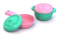 Этот набор детской посуды, состоящий из сковородки, кастрюли и прилагающихся к ним крышечек, пригодится маленькой домохозяйке для сюжетно-ролевых игр в кухню. Набор имеет забавный красочный дизайн и изготовлен из прочного и мягкого пластика. Набор поможет девочке ознакомиться с функциями кухонной утвари. Теперь кроха сможет готовить борщи, супы и жарить блины. Посудку можно брать с собой на улицу, а чтобы после прогулки очистить ее от загрязнений, нужно промыть с мылом и водой. Материалы, из которых сделаны игрушки, не содержат вредных веществ.