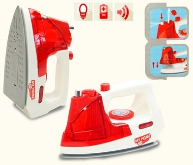 Внешне игрушка мало чем отличается от обычного электроутюга. У нее есть емкость, куда наливается вода для разбрызгивания во время глажки, тумблер для установки температурного режима, подсветка, а также классная озвучка, имитирующая работу настоящего электроприбора. Игрушечная бытовая техника – это уникальная возможность, играя, научиться многим полезным и важным вещам, с которыми придется столкнуться по мере взросления.