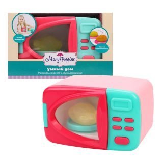 Игрушечная микроволновая печь из серии «Умный дом» от ТМ Mary Poppins продумана до мельчайший деталей, поэтому она так похожа на настоящую! Дверца микроволновки открывается нажатием кнопки OPEN. При включении внутри игрушки загорается свет, а поддон с муляжом курицы реалистично вращается. Приятный бонус: после «приготовления» в микроволновке курочка поменяет свой цвет.