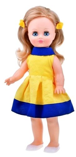 При нажатии на звуковое устройство, вставленное в спинку, кукла произносит фразы. Наличие элементов одежды, которые легко снимаются и надеваются, разнообразит возможности сюжетно-ролевых игр с этой куклой, в процессе которых развивается мелкая моторика и творческое воображение ребёнка.