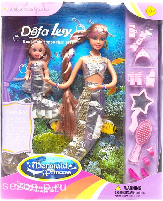 Набор кукол Принцессы моря – желанный подарок для маленькой принцессы. Окунуться в волшебный мир, где существуют красивые русалочки, она сможет с рыбкой и очаровательными куколками - представительницами подводного царства. Красавица Defa стала русалочкой! Ее сверкающий хвост помогает ей плавать под водой, а компанию ей составляет ее дочка, также ставшая русалочкой! А если они захотят выйти на землю - они легко сбросят хвосты и станут девочками! Наряд куколок выполнен из приятного на ощупь материала, ткани очень яркие и нарядные, как у настоящих морских принцесс! Девочка проведет с такими замечательными куклами множество часов, разыгрывая самые неожиданные игровые ситуации и занимательные сценки.