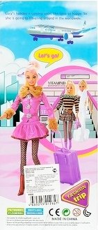 Состав набора: кукла в одежде, сумочка, чемодан.