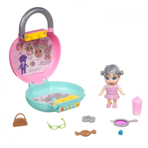 Например, одна куколка пьет, другая пьет и писает, а третья реагирует на влагу! У куколки двигаются ручки, снимается головной убор - у каждой куколки он свой. На неё можно примерить все аксессуары из любого набора OLY. Упаковка в виде чемоданчика с кодовым замочком поможет хранить в тайне все свои секретики и аксессуары пупса.