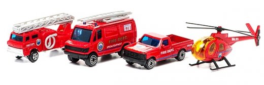 Игровой набор Пожарные машины – позволит Вашему ребенку почувствовать себя частью настоящей пожарной команды. В комплект входят 4 невероятно реалистичные, хорошо проработанные и детализированные модели пожарной техники: вертолет и 3 различные машинки. Лопасти вертолета и колеса машин вращаются, техника окрашена в насыщенный красный цвет, краны поднимаются и опускаются.