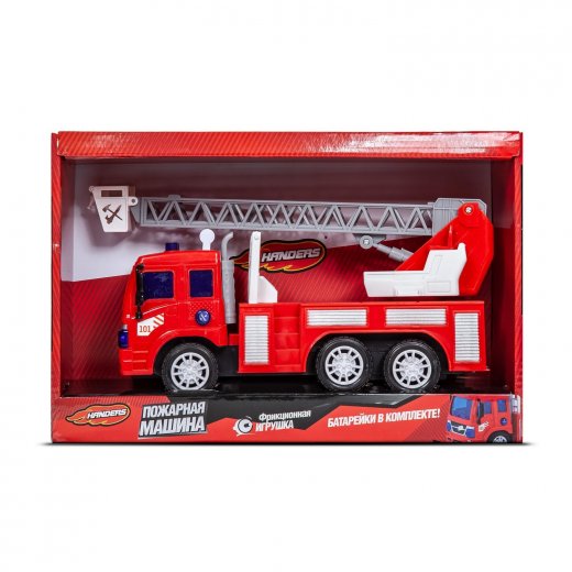 Фрикционный автомобиль Handers "Пожарная машина: Автолестница" выполнен с высокой степенью детализации. Кроме того, автомобиль оснащён подвижными деталями, световыми и звуковыми эффектами.