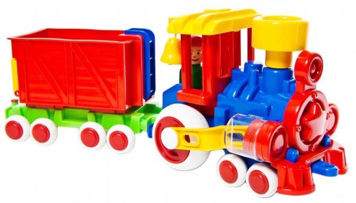 В паровоз и вагоны можно посадить маленькие фигурки. Пластмассовый паровозик может стать незаменимым другом в песочнице. С такой игрушкой любой мальчишка придумает много интересных историй и сценариев.