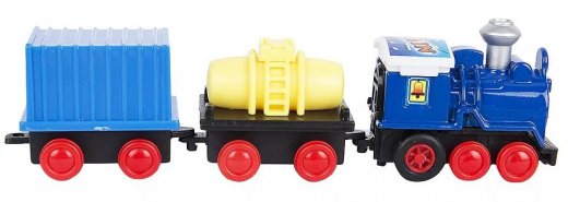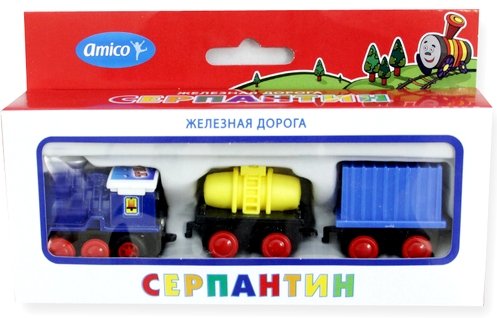 Поезд с инерционным механизмом может использоваться как обычная игрушка, а может дополнить одну из железных дорог «Серпантин» от компании Amico (продается отдельно). Благодаря инерции, ребенок с легкостью может запустить поезд, который быстро наберет скорость и остановится лишь спустя некоторое время. Состав строится из одного локомотива и двух грузовых вагонов, каждый из которых перевозит что-то определенное. Игрушка не только яркая и привлекательная, но и сможет прослужить ребенку в течение долгого времени, так как создана из качественных материалов.