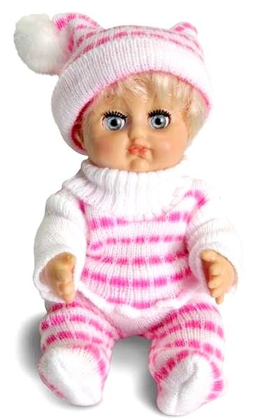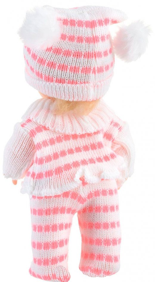 Одета малышка в тёплый вязаный костюмчик, её приятно брать на ручки, так как куколка полностью выполнена из эластичного винила. У куклы подвижные ручки, ножки и голова, а крой и пошив одежды исполнен таким образом, что её легко можно снять и надеть. С такой замечательной куклой девочка проведет множество часов, разыгрывая самые неожиданные игровые ситуации.