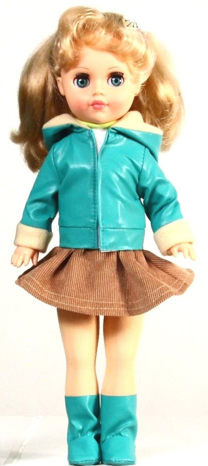 Кукла Мила имеет пропорциональное телосложение, это сближает ее с живой девочкой. Теплая курточка из искусственной кожи, юбка, блузка, сапожки создают стильный образ. Волосы куклы сделаны из качественного нейлона и напоминают настоящие, их можно расчесывать, завивать и создавать различные прически. Мила артикулирована, у нее двигаются ручки и ножки, а голова крутится в разные стороны. Если куклу уложить спать, она закроет глазки, словно настоящий ребенок.