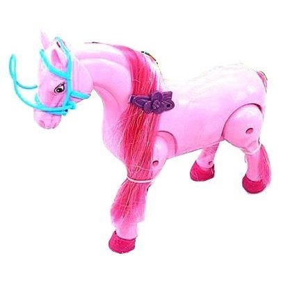 Очаровательна лошадка представляет собой удивительную музыкальную игрушку, которая порадует ребенка не только звуковыми эффектами, но и привлекательными внешними данными. Она выполнена из пластмассы и является обладательницей украшенной заколочкой потрясающей гривы, которую можно расчесывать прилагающейся расческой.