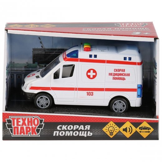 Машина на бат свет+звук "Микроавтобус скорая инерц",выполненная в виде микроавтобуса Скорой помощи, удивит мальчишек реалистичностью и проработкой деталей кузова. Во время игр с машинкой дети смогут изображать спешку экипажа на вызов, а благодаря прозрачным стёклам можно изучить салон с сиденьями, рулем и рычагами. Особенно мальчишкам понравятся звуковые и световые эффекты игрушки, делающие сюжетное развлечение еще интереснее. Рельефные колеса свободно вращаются, позволяя катать машинку, а встроенный инерционный механизм поможет проехать небольшое расстояние самостоятельно после оттягивания игрушки назад.