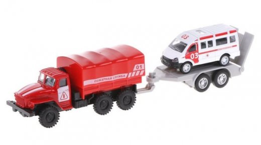 Спецслужбы в миниатюре – пожарная машина с прицепом и машина скорой помощи. Обе машины отличаются тщательной проработкой деталей.