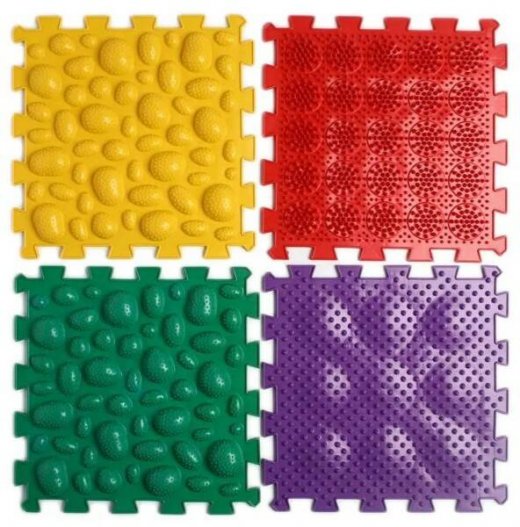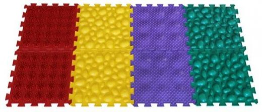 Комплект состоит из восьми модулей по паре каждого вида: 2 модуля ""Жёсткие Морские камни"" желтого цвета, 2 модуля ""Мягкие Морские Камни"" зеленого цвета, 2 модуля ""Мягкие Кактусы"" красного цвета, 2 модуля ""Мягкие Ёжики"" фиолетового цвета. Заметное улучшение всех функций стопы ребенка. Развитие и укрепление связочного аппарата на стопах малыша. Коврики Орто Пазл отличный вариант для подарка, на день рождения, юбилей, новый год, праздник, выписку. Чудесный массажер, валик. Специальная ручка на коробке, позволяющая хранить коврики в коробке долгое время. Предотвращение деформации стопы. Уменьшение нагрузки на суставы ног и на позвоночник.