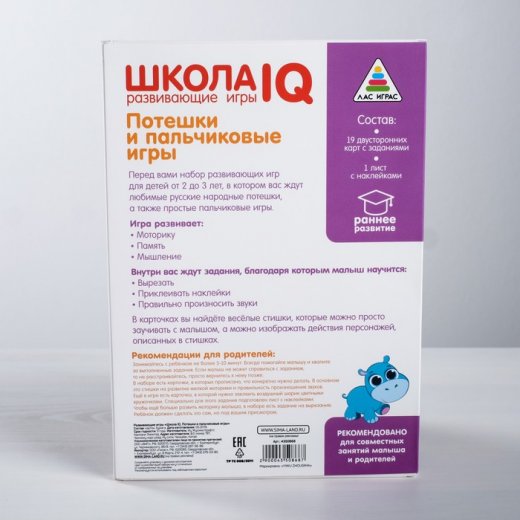 Купить Развивающая игра Школа IQ Потешки и пальчиковые игры в Новосибирске Вы можете в магазине развивающих и настольных игр "Игры Почемучек".