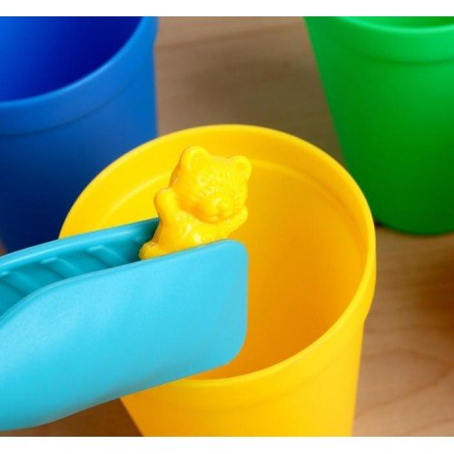 1. Ярких мишек можно раскладывать по стаканчикам при помощи пинцета.