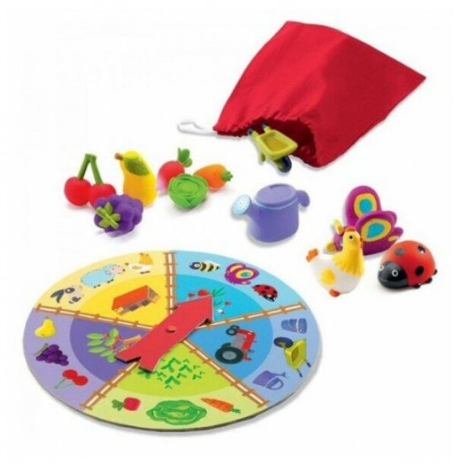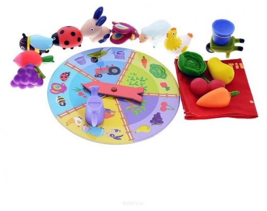 В комплекте есть игровое поле со стрелкой и секторами, на которые нанесены различные геометрические предметы.