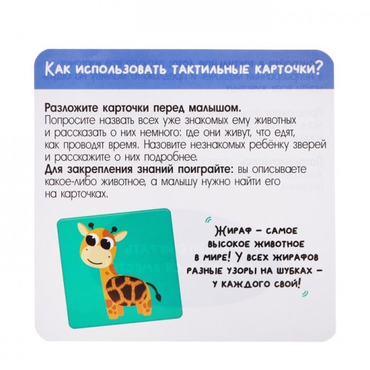 Купить Тактильные карточки «Животные Африки» в Новосибирске Вы можете в магазине настольных и развивающих игр "Игры Почемучек"